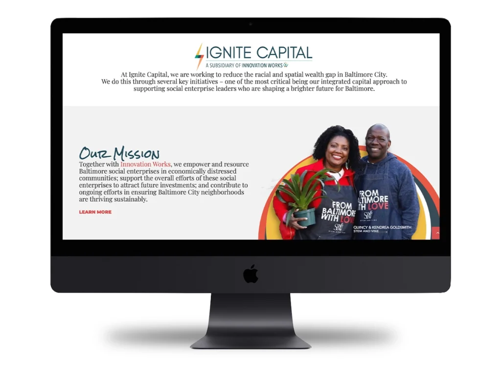 Ithan Payne Creative collaborated with Denise Dixon-Cooper, the Director of Strategic Communications & Events for Innovation Works (Baltimore), to transform the organization’s visual identity and digital presence—impacting both Innovation Works and its capital arm, Ignite Capital.